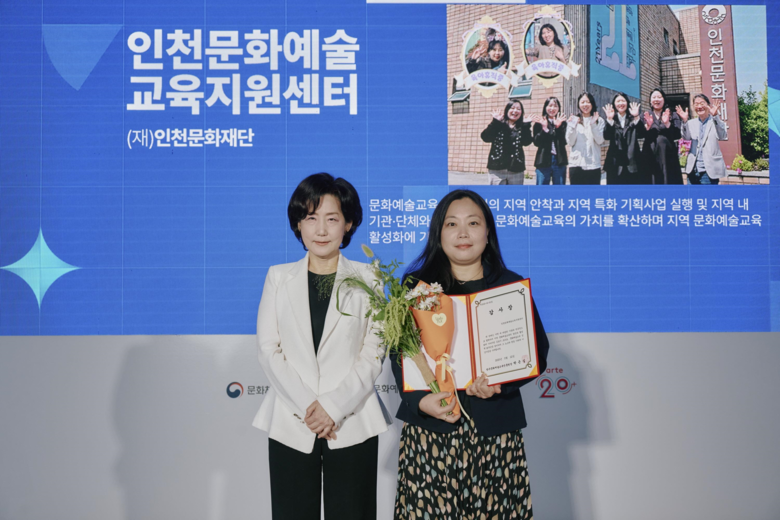 [인천 세계타임즈=심하린 기자] 인천광역시(시장 유정복)와 (재)인천문화재단(대표이사 김영덕)은 지난 5월 22일에 한국문화예술교육진흥원이 주관한 '2025 세계문화예술교육주간 및 정책 20주년 기념 행사'에서 한국문화예술교육진흥원장상을 수상했다고 밝혔다.