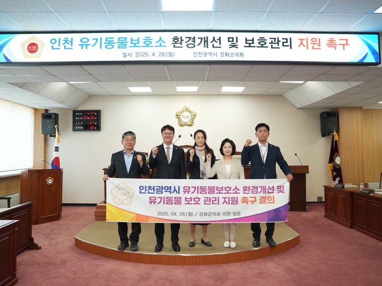 이에 강화군의회는 인천시에 대해 ▲유기동물 보호소 운영 예산의 대폭 확대와 시설 개선 ▲유기·유실 방지를 위한 제도 강화 및 예방 사업 확대 ▲인천시 직영 동물보호센터 설립을 통한 체계적인 보호 시스템 구축을 강력히 촉구했다.