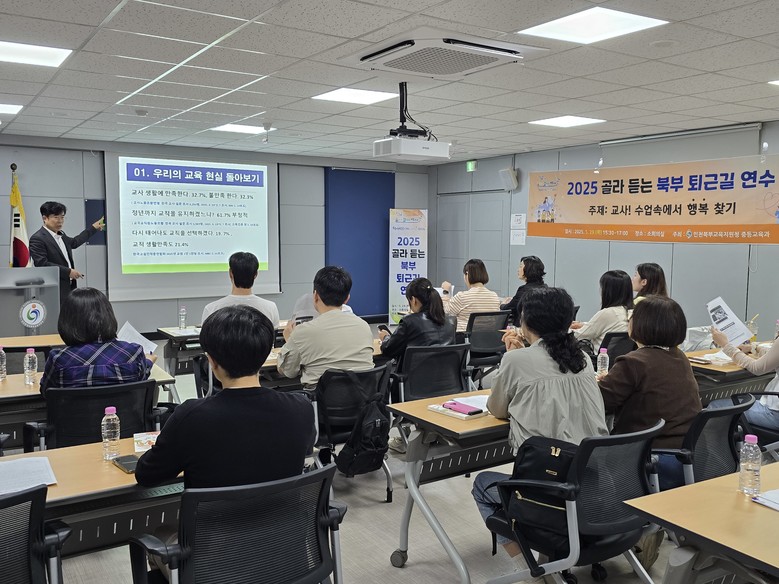[인천 세계타임즈=심하린 기자] 인천북부교육지원청(교육장 윤건선)은 29일, 관내 초·중학교 교사를 대상으로 ‘2025 골라 듣는 북부 퇴근길 연수’의 일환으로 ‘교사! 수업 속에서 행복 찾기’ 연수를 실시했다.