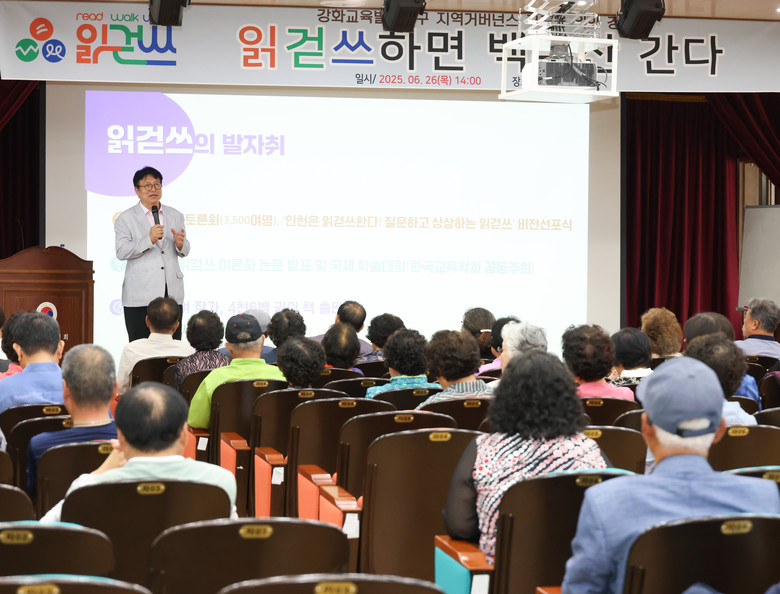 [인천 세계타임즈=심하린 기자] 인천광역시교육청(교육감 도성훈)은 26일, 강화군 노인대학(학장 이채웅) 어르신 150여 명을 대상으로 ‘강화교육발전특구 지역거버넌스 구축을 위한 강연회’를 개최했다.