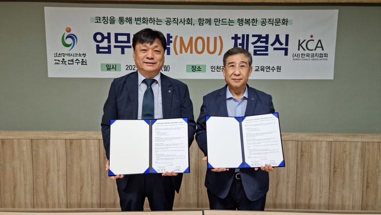 [인천 세계타임즈=심하린 기자] 인천광역시교육청교육연수원(원장 최철호)은 26일, 한국코치협회(회장 배재훈)와 ‘KAC 자격 코치 육성’을 위한 업무협약(MOU)을 체결했다.