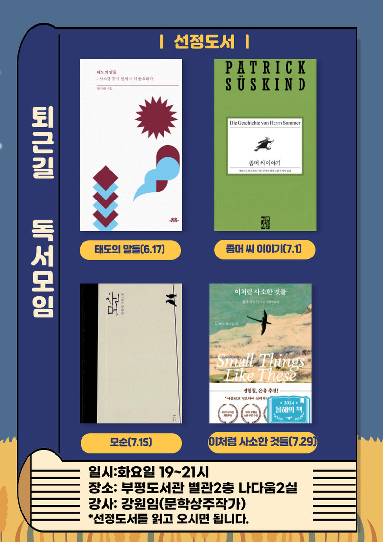 인천광역시교육청부평도서관, 문학상주작가와 함께하는 ‘고전읽기’와 ‘퇴근길’ 독서모임 운영