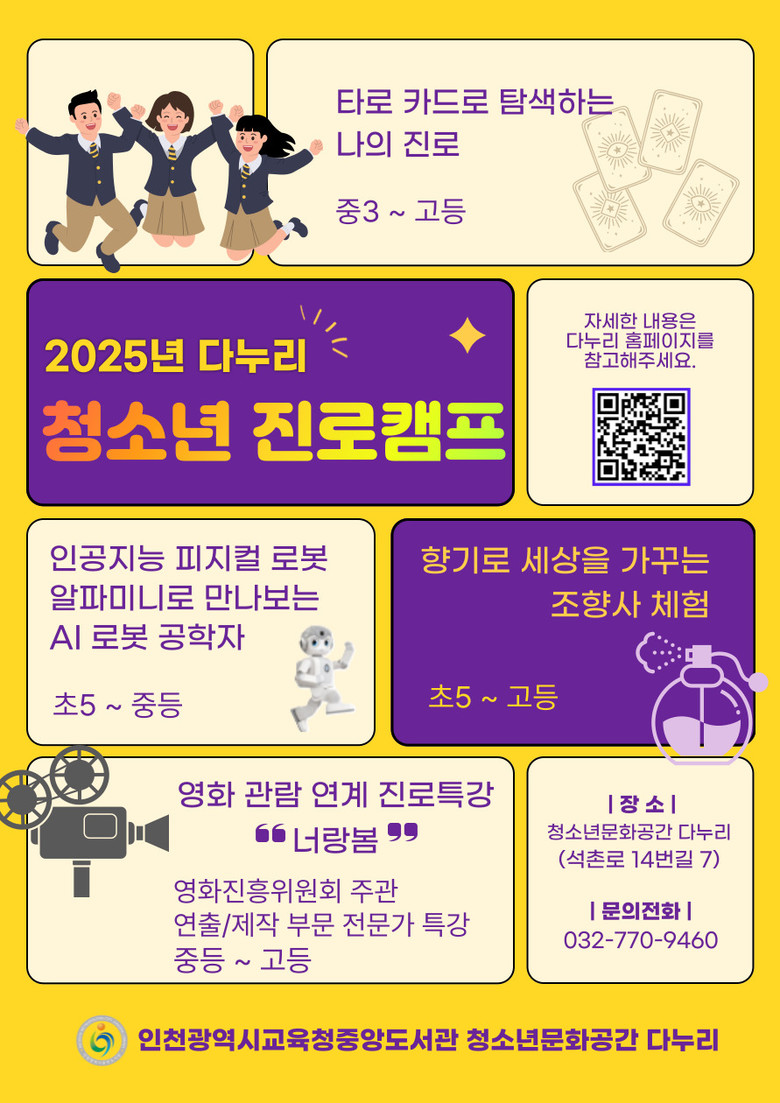 자세한 사항은 다누리 누리집 또는 청소년문화공간 다누리(☎032-770-9460)로 문의하면 된다.