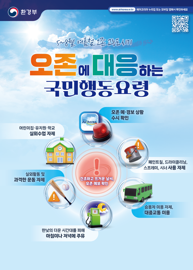 연수구 관계자는 “오존농도가 높아지는 여름철 고농도 오존 관리 대책을 적극적으로 추진해 구민 건강 보호에 최선을 다하겠다.”라며 “구민들께서도 오존 발생 상황에 주의하시고 국민행동요령에 따라 고농도 오존 발생 시 실외 활동과 과격한 운동 자제를 바란다.”라고 말했다.