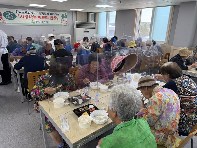[강화군 세계타임즈=심하린 기자] 강화군노인복지관(관장 윤심)은 지난 11일 한국글로벌셰프고등학교와 연계하여 복지관 어르신 250명을 대상으로 “사랑나눔 셰프의 밥상”을 진행했다.