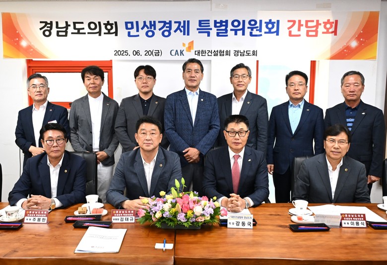 [경남 세계타임즈=최성룡 기자] 경남도의회 민생경제 특별위원회(위원장 김태규, 통영2, 국민의힘)는 지역경제 현장 목소리를 청취하고자, 지난 6월 20일 대한건설협회 경남도회, 상남시장 상인회를 방문하여 집행부로부터 주요 사업추진 사항 등 관련 업무보고를 받고 현장의 애로사항을 청취하는 시간을 가졌다.